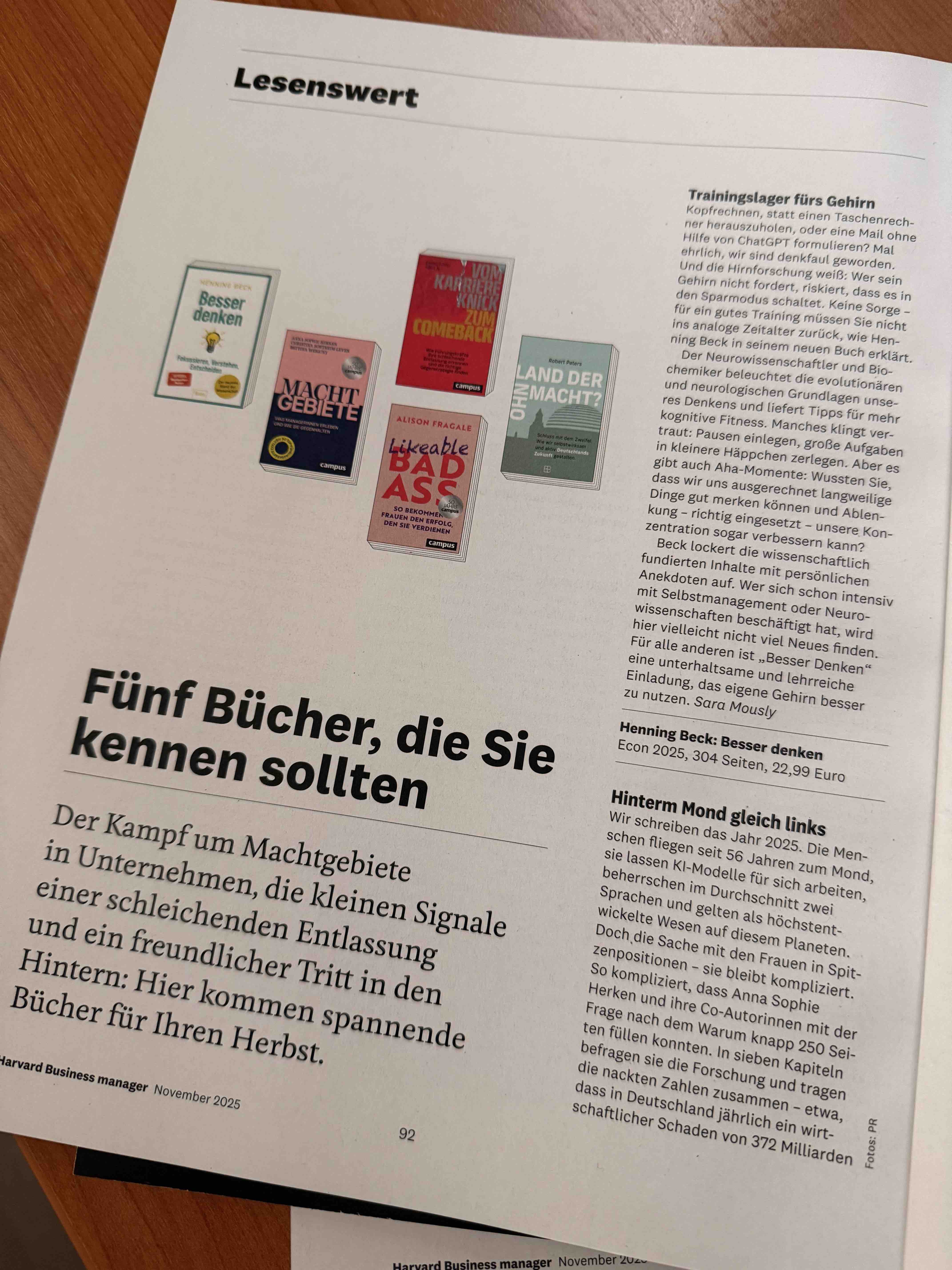 Der Harvard Business Manager hat in seiner aktuellen Ausgabe das Buch „Vom Karrierknick zum Comeback“ unter die fünf Bücher aufgenommen, die man kennen sollte.